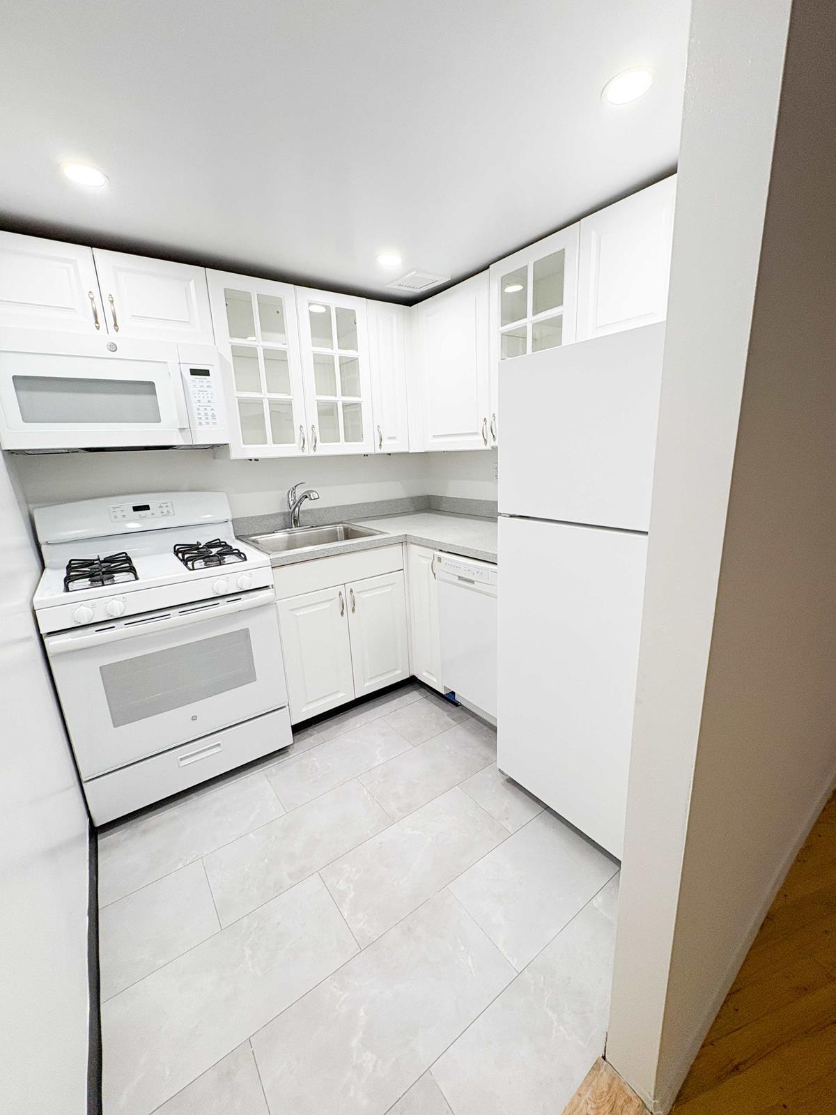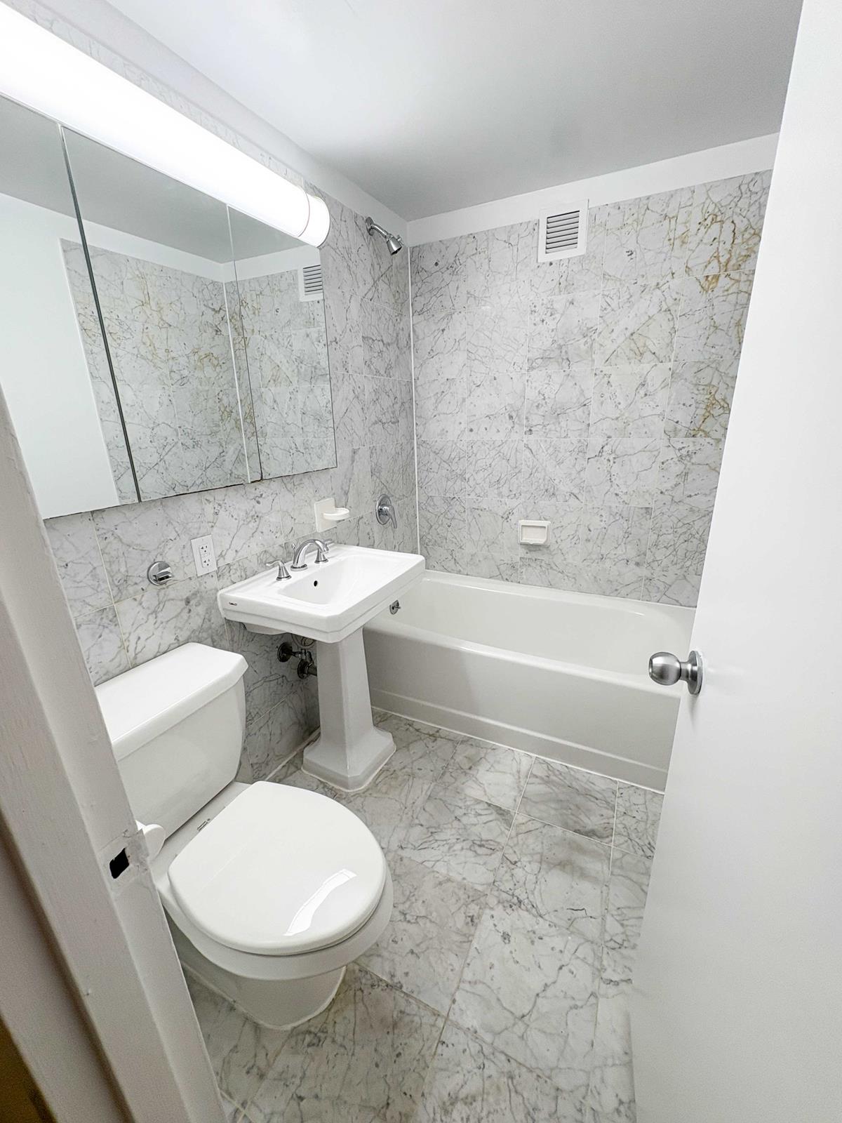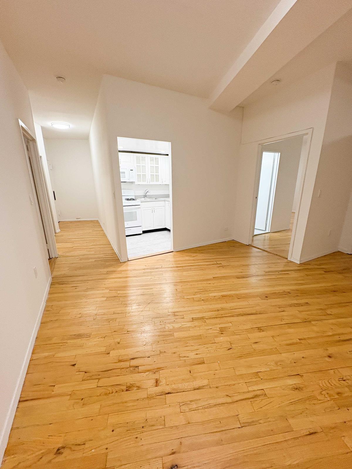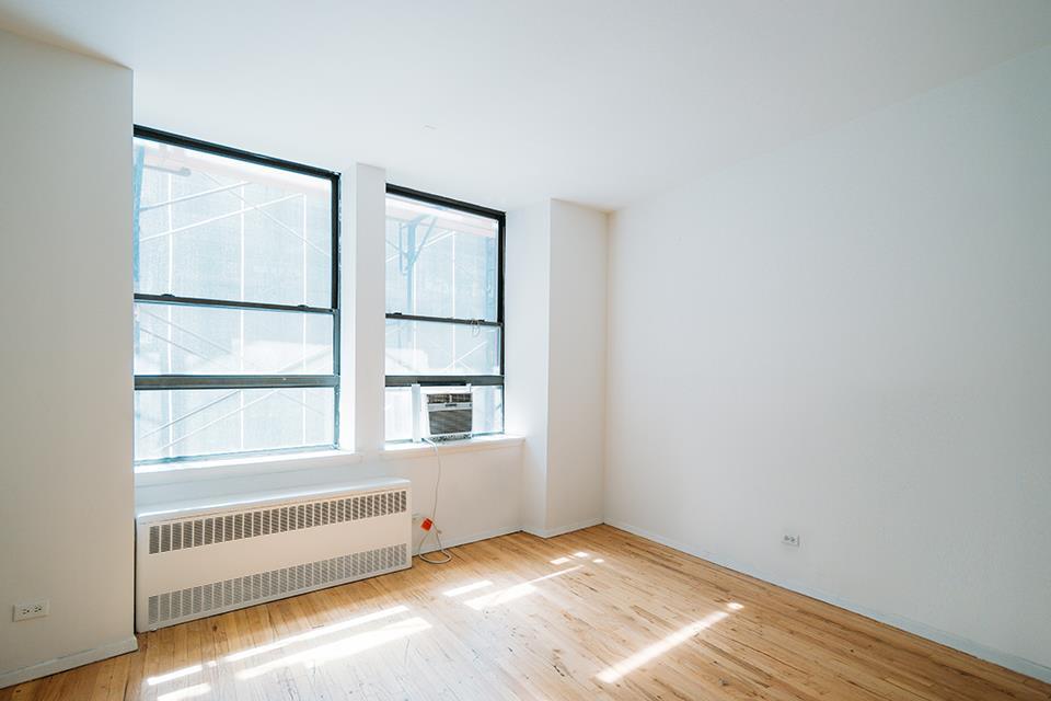 Renovated live work 3BR/ 2Bath apartment in Landmark Delmonico's building. This is an elevator building with roof deck, laundry room, package room and gym. The kitchen has tiled floors, glass front cabinets and microwave and dishwasher. There is a huge walk-in closet. Heat and hot water are included in the rent and A/C window units are supplied.