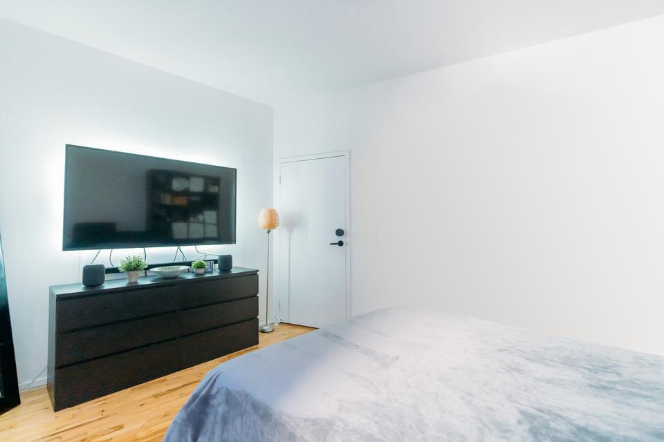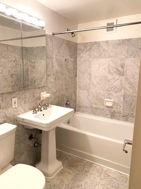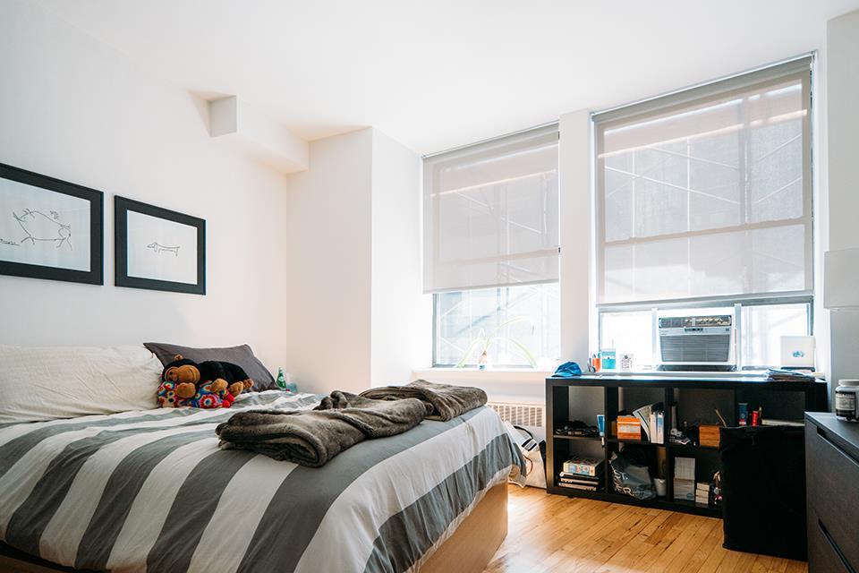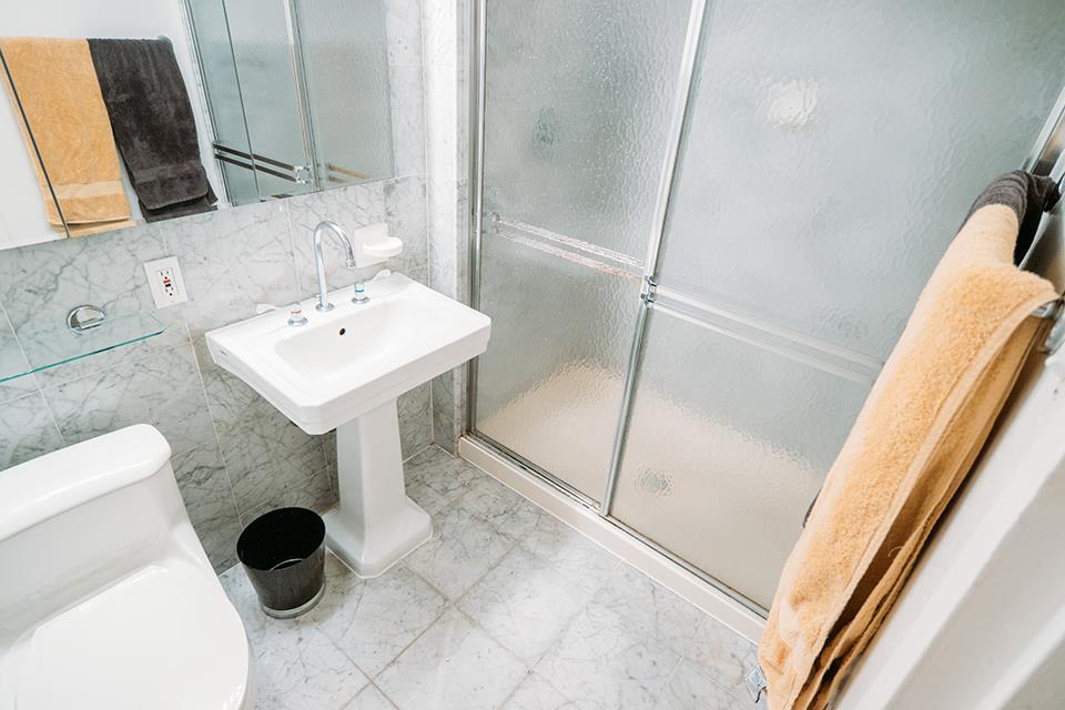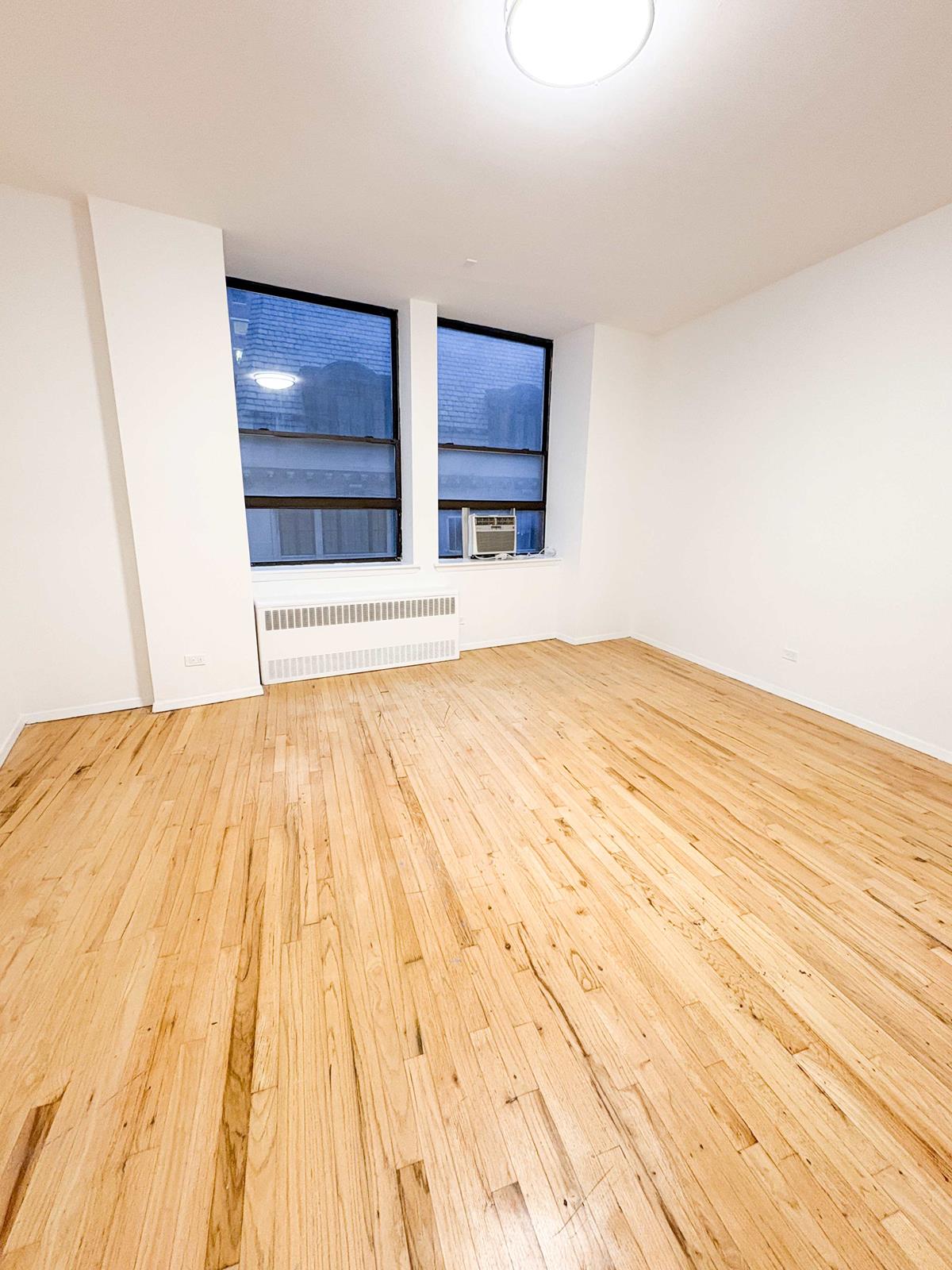 Renovated live work 3BR/ 2Bath apartment in Landmark Delmonico's building. This is an elevator building with roof deck, laundry room, package room and gym. The kitchen has tiled floors, glass front cabinets and microwave and dishwasher. There is a huge walk-in closet. Heat and hot water are included in the rent and A/C window units are supplied.