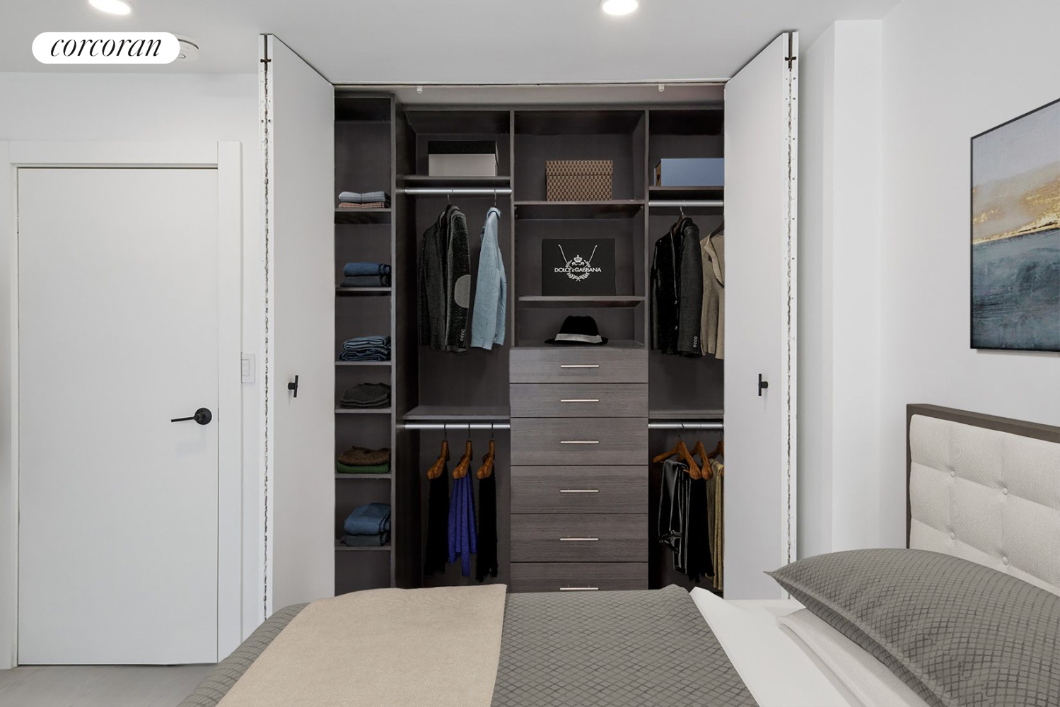 All closets are custom, including two brand-new California Closets for optimal storage.