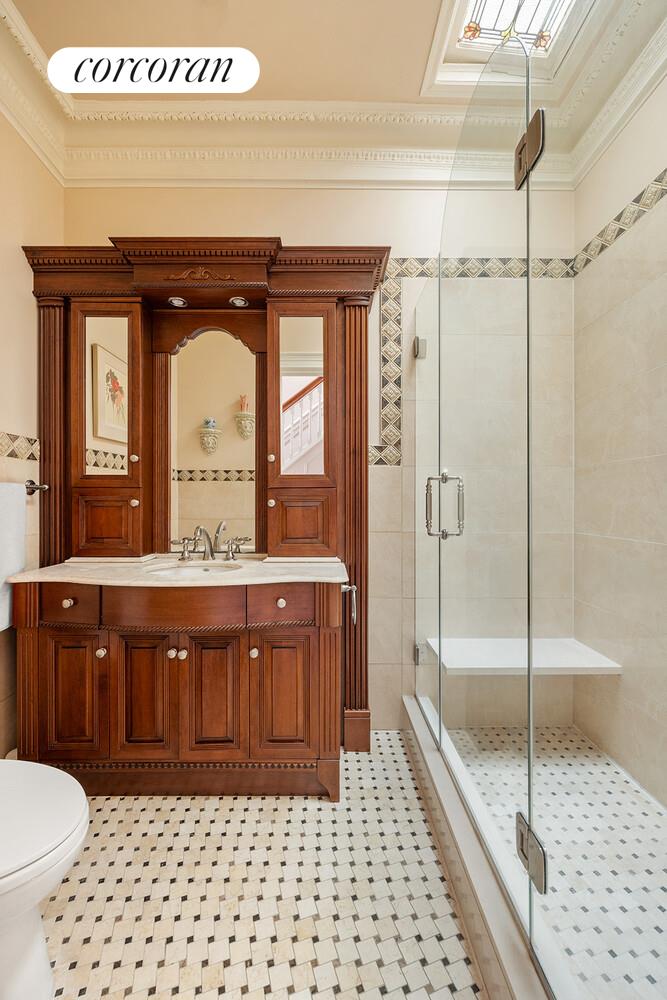 Enter up the stoop to a sun-filled parlor with decorative fireplace, stunning woodwork, and inlaid parquet floors. Beyond, the dining room opens to a bright rear kitchen with direct access to a landscaped garden-a private oasis designed for entertaining and everyday enjoyment.