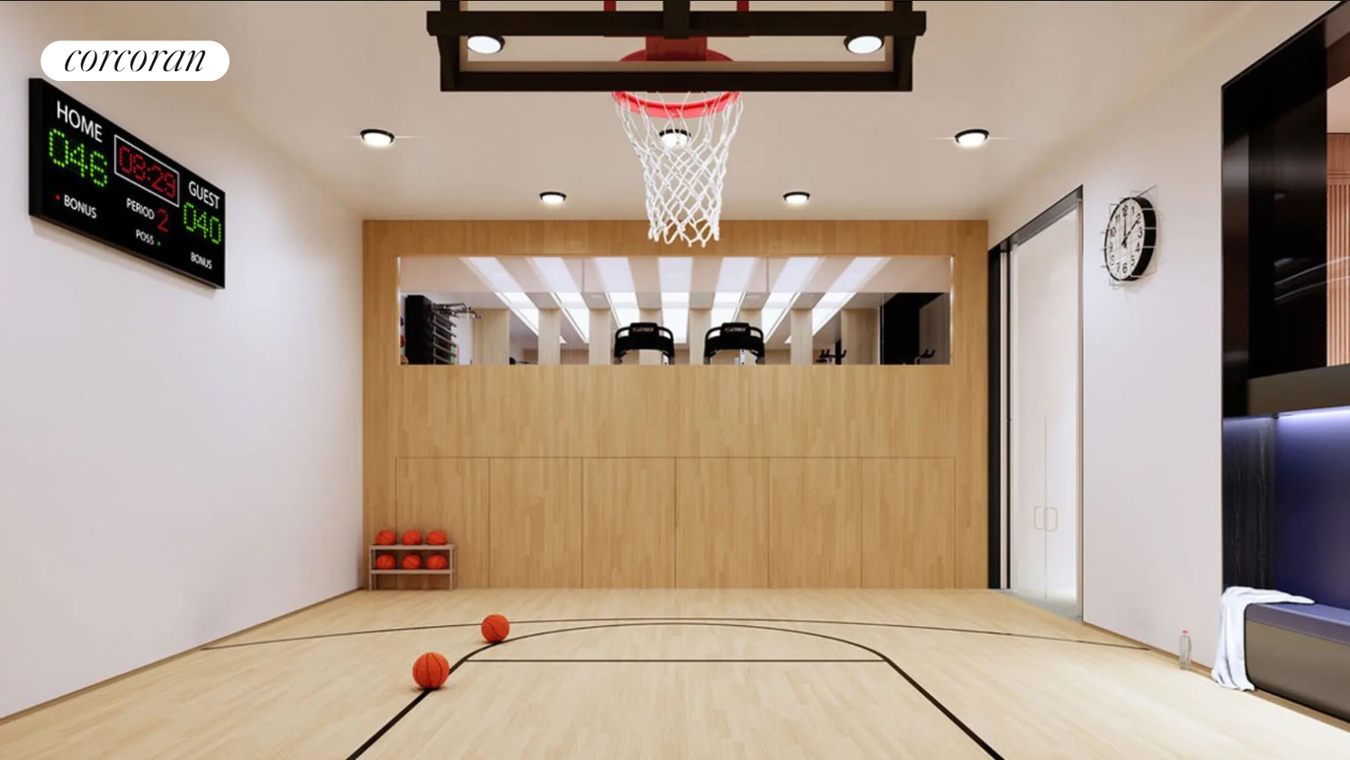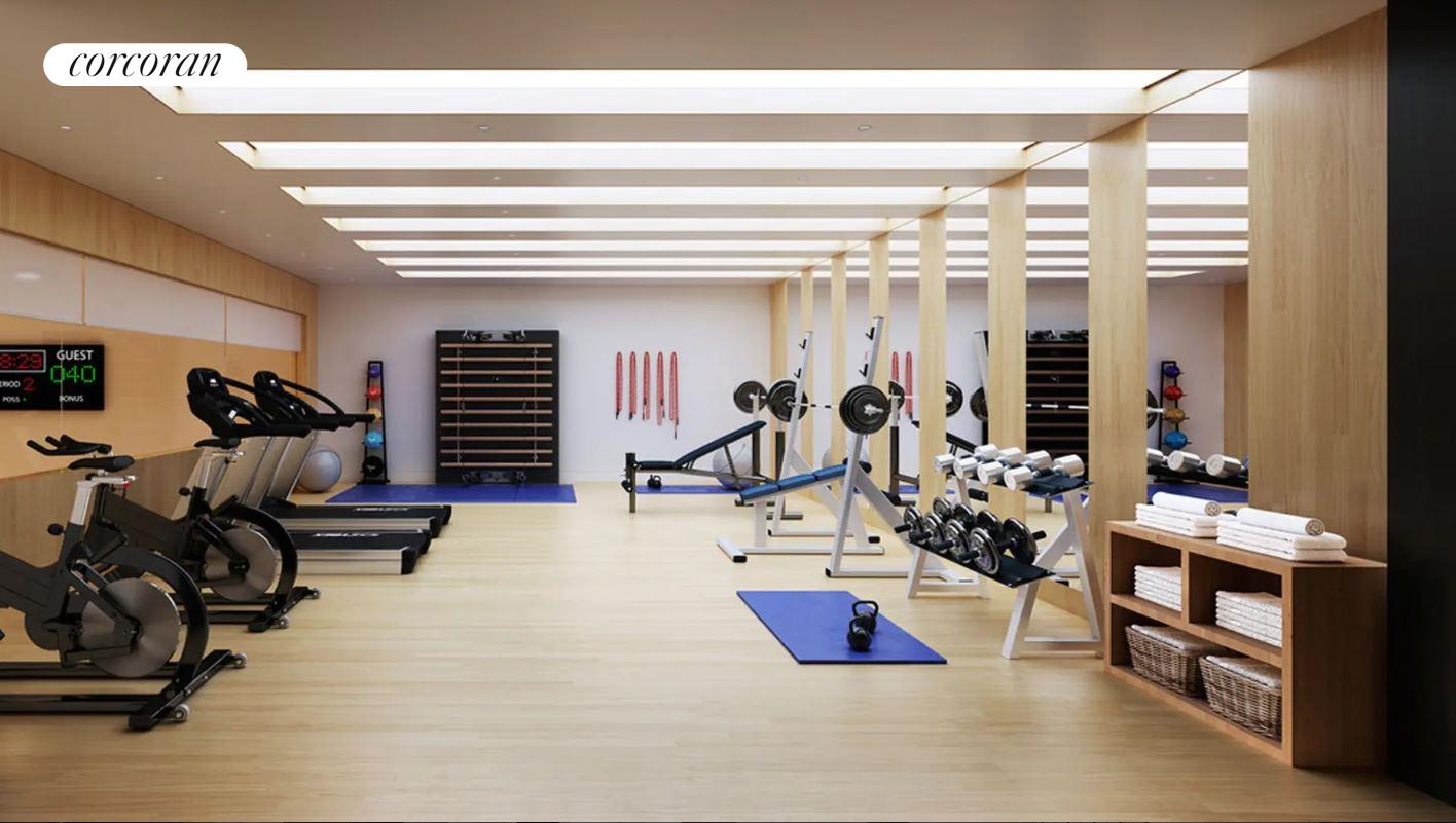 Residents enjoy access to an outstanding suite of amenities, including a 24-hour doorman and concierge, state-of-the-art fitness center, basketball court, paneled library with a pool table, and a beautifully landscaped roof deck with a gas fire pit and multiple seating areas. A cascading series of terraces atop the building offers exceptional private outdoor living.
