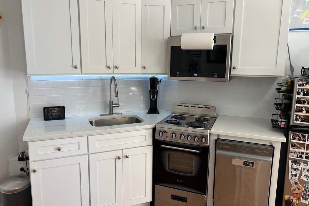 The apartment features hardwood floors, high ceilings, newly renovated with dishwasher and S. Facing Terrace.