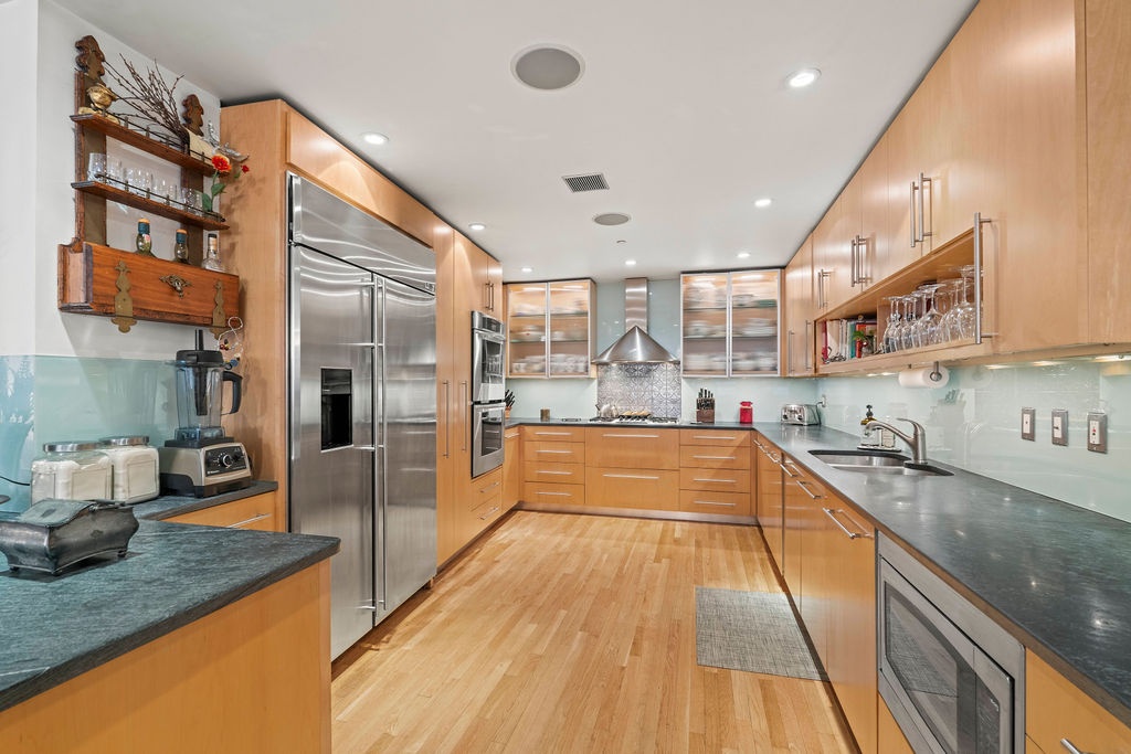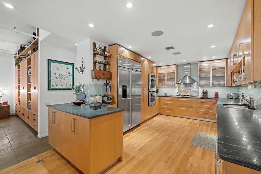 IF you understand value and opportunity, priced at under $1,000 per square foot with low maintenance, this exceptional and rare 4,000 sq. ft. loft with 11-foot ceilings may be your next grand home or live-work space. The open floorplan flows and offers tremendous flexibility. A massive U-shaped Chef’s Kitchen with a grand island, 64 cupboards and premium appliances -- including a built-in GE Monogram refrigerator/freezer, double-stacked Thermador ovens, separate 6-burner Thermador range, Miele dishwasher, microwave, and wine cooler -- this space is ready to handle gatherings of any size. The large double living room is ready for huge comfortable couches. The formal dining area easily seats 12. Plus, there’s a grand ping pong/billiards room. All this is anchored by large clothing and storage closets, custom built-in cabinetry perfect for bottle collections, and gallery walls to feature an art collection. Five (5) potential bedrooms can also double as office spaces and/or a private gym. These are accompanied by three (3) full bathrooms. The primary en-suite bath features dual sinks; a dual spa-like stone shower; a Jacuzzi tub for two; and, a bidet. Each bedroom has well-lit built-in closets and abundant built in drawer space. The laundry room has a full-sized washer and dryer, storage and mechanicals. Central air ensures year-round comfort. Quiet is also included -- due to double-layered insulated windows. All this plus a private, locked basement storage room. Ethernet-wired and move-in ready, this is loft living without compromise.