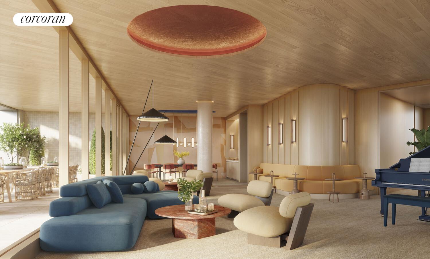 - A 22nd-floor co-working and piano lounge with panoramic views