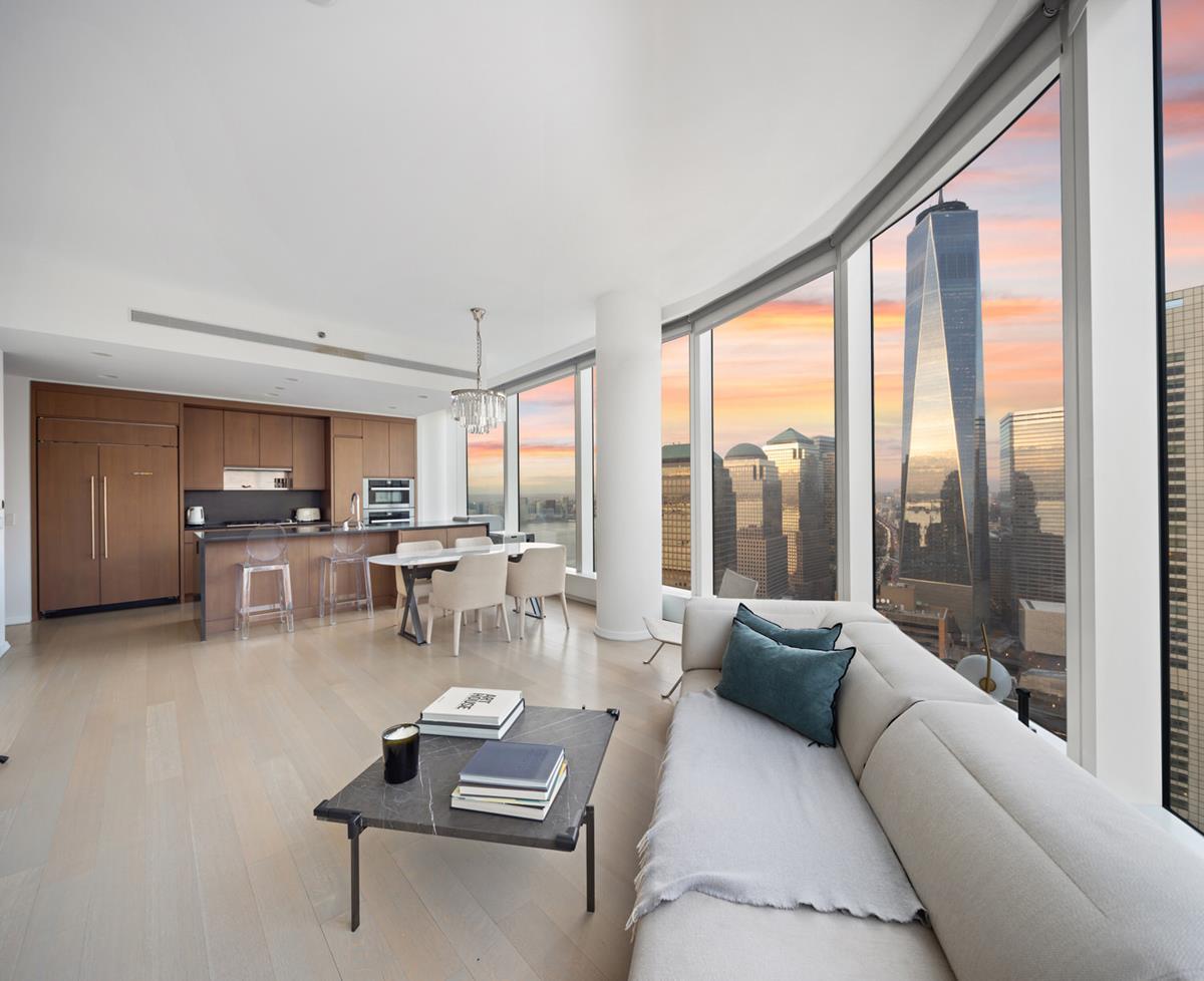50 West, a 64-story residential tower located in the center of the New Downtown, features unparalleled views of the New York Harbor, the Hudson and East Rivers, the Statue of Liberty, and Ellis Island. Internationally-acclaimed architect Helmut Jahn has designed the approximately 780’ skyscraper to feature floor-to-ceiling curved glass windows. The expansive interior layouts, ranging from one to five bedrooms and featuring an array of duplex and double height spaces, were designed and finished by Thomas Juul-Hansen. Four floors of the tower are devoted to state-of-the-art amenities: an immense Fitness Center, the beautifully-appointed Water Club, unique children’s amenities, and The Observatory at 50 West Street, a spectacular 64th-floor outdoor entertaining space with seemingly infinite views of New York and beyond