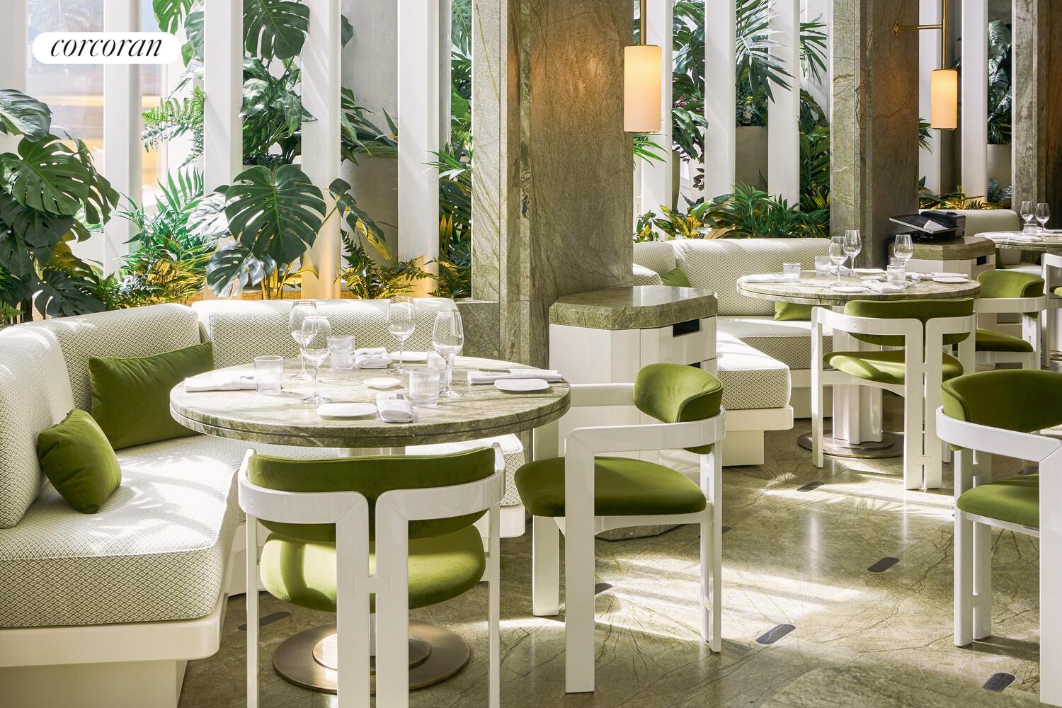 With a distinct service program focused on self-care and wellness and four floors of purposeful and impressively designed amenity salons, Selene sets itself apart. Every lifestyle offering is thoughtfully considered and composed to rejuvenate and relax. Public spaces designed by AD100 recipient William T. Georgis are appointed with a museum quality art collection, anchored by an installation in the Fireside Lobby by celebrated artist Rachel Feinstein. Amenity spaces span four floors and are naturally lit by floor-to-ceiling glass walls. The 60-foot-long garden sanctuary swimming pool is surrounded by an arbor of trees. The enfilade of wellness spaces and lounges including The Spa, Fitness and Yoga Salons, Billiards Lounge, Conference Room and Library are finished with slatted oak and smokey granite. The Michelin-starred Le Jardinier restaurant-helmed by Chef Alain Verzeroli and the first New York City restaurant designed by AD100 recipient Joseph Dirand-is just an elevator ride away.
