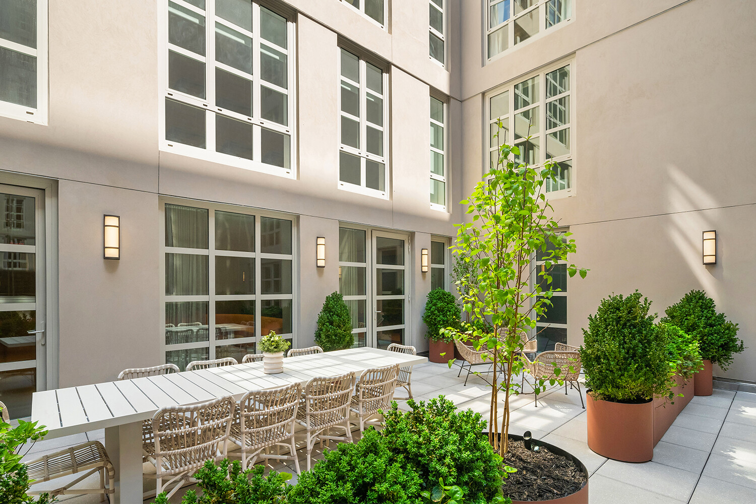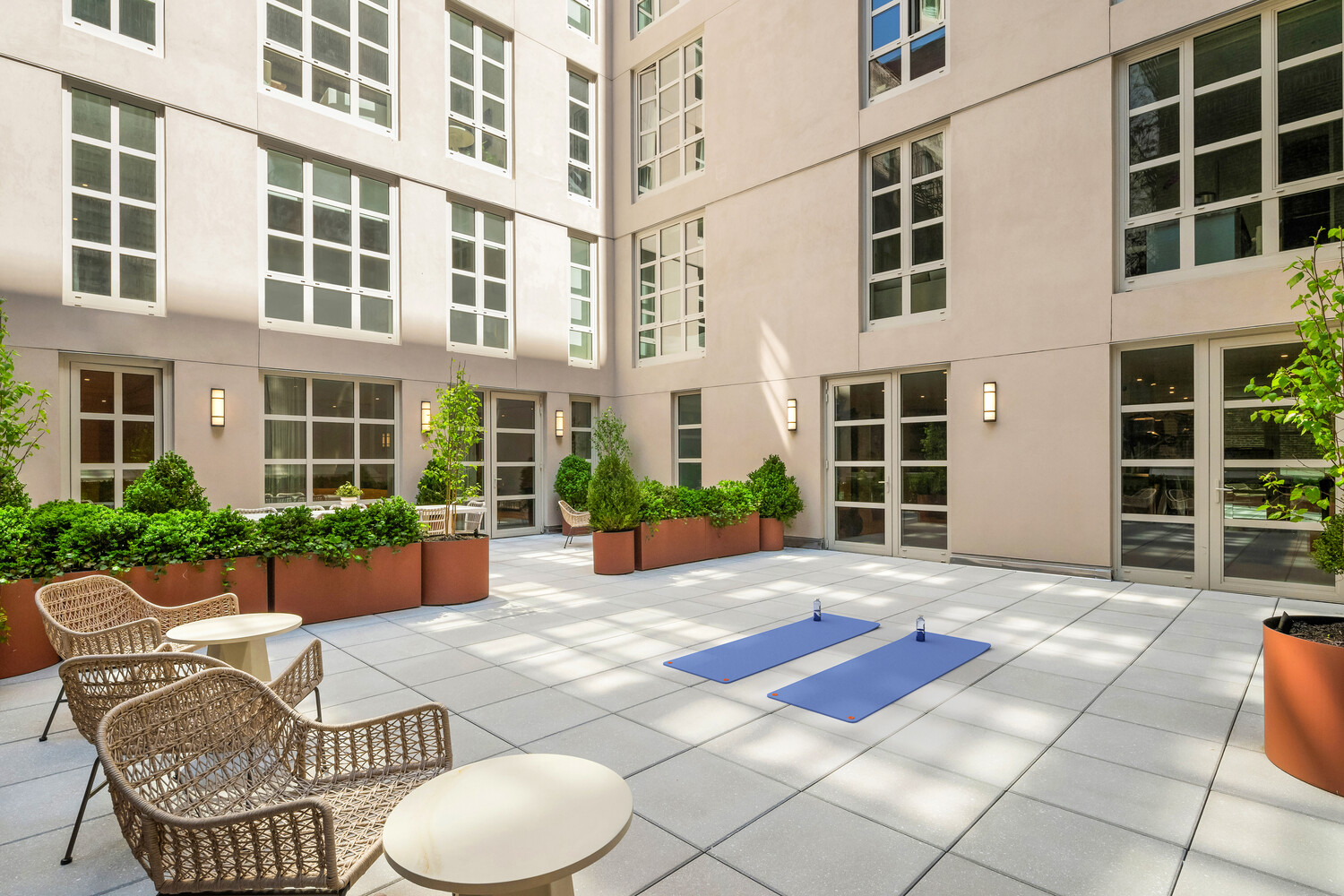 Boutique in scale, rich in character, 250 East 21st Street is perfectly situated in one of the city's most iconic and celebrated neighborhoods, just steps away from the park. Tree-lined streets lead to a classic contemporary address, designed to blur the boundaries between indoor and outdoor living. The homes are enhanced with a suite of wellness and social amenities, including two landscaped rooftop parks with views of New York's most iconic landmarks. The second-floor landscaped Yoga Garden shares adjacencies to the Fitness Center, with LifeFitness cardio and conditioning equipment, and a beautifully-appointed Residents' Salon. Additional conveniences include a 24-hour attended lobby, dedicated bicycle storage, and private storage available at an additional cost.