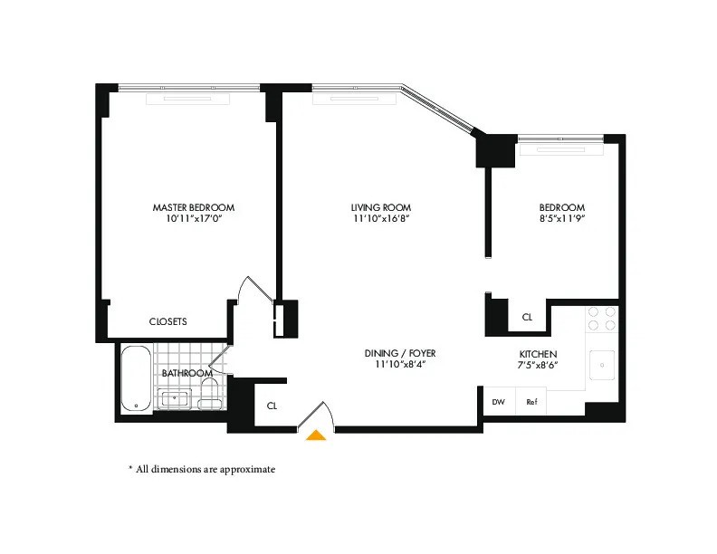 301 East 22nd Street #6Es entry foyer leads into a dining area and a bright living room with dual exposures. Western light fills the space in the afternoon with the northern exposure offering Empire State Building views. The windows have been upgraded so the apartment is incredibly quiet.