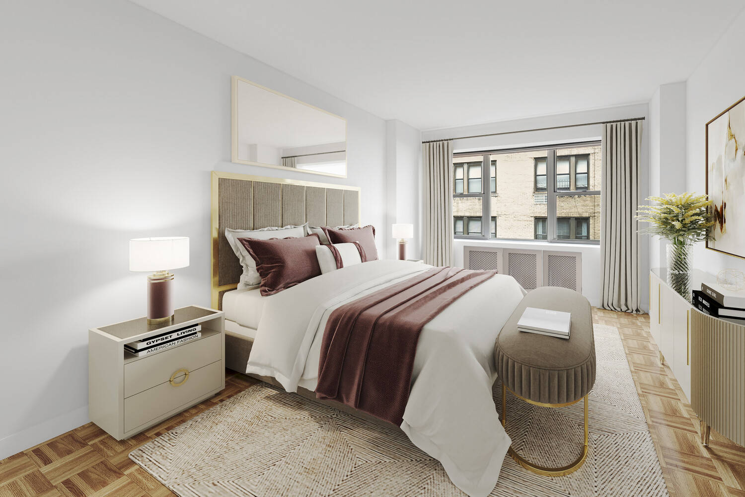 This spacious apartment with its newly renovated kitchen offers a great amount of light throughout the day and has lots of generous storage space, including three walk-in closets.