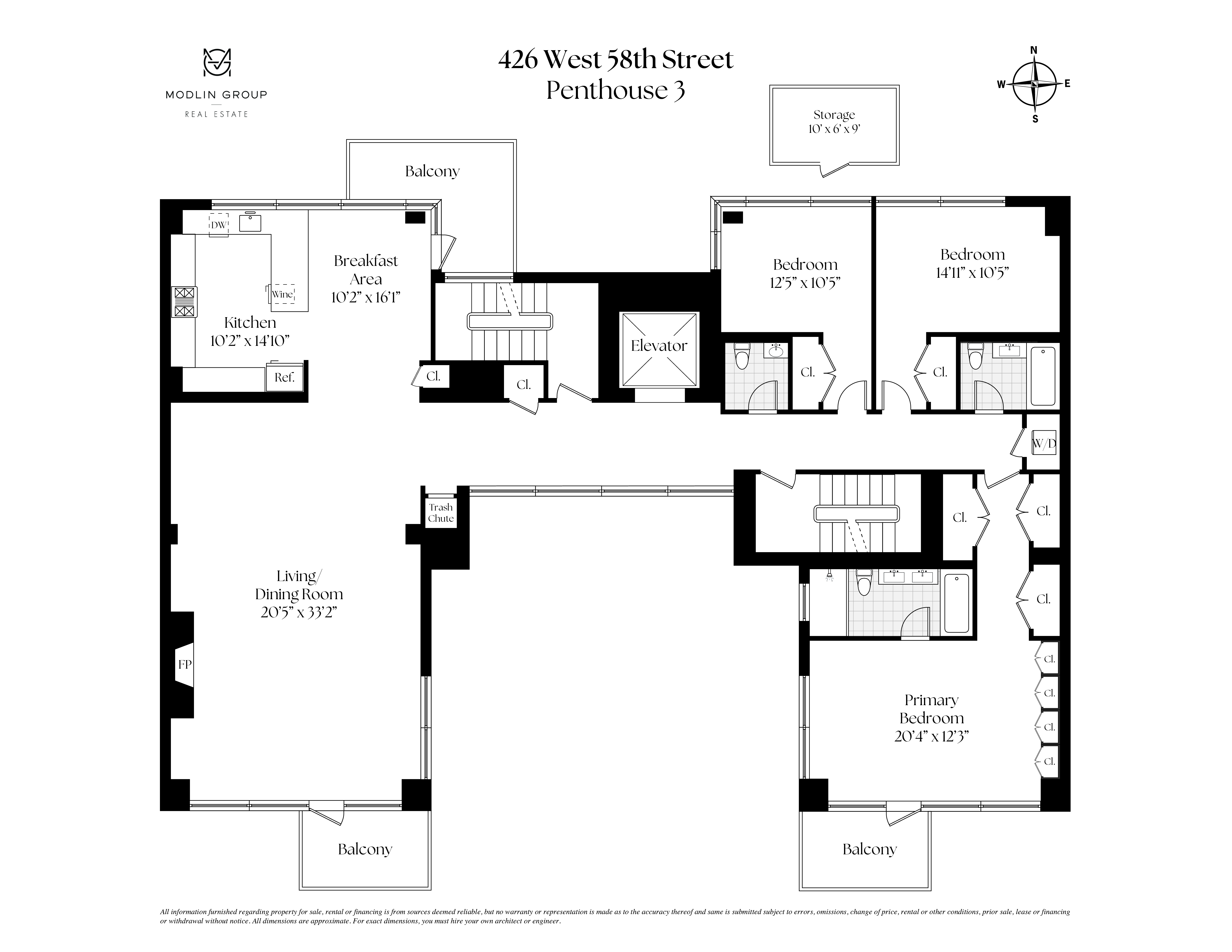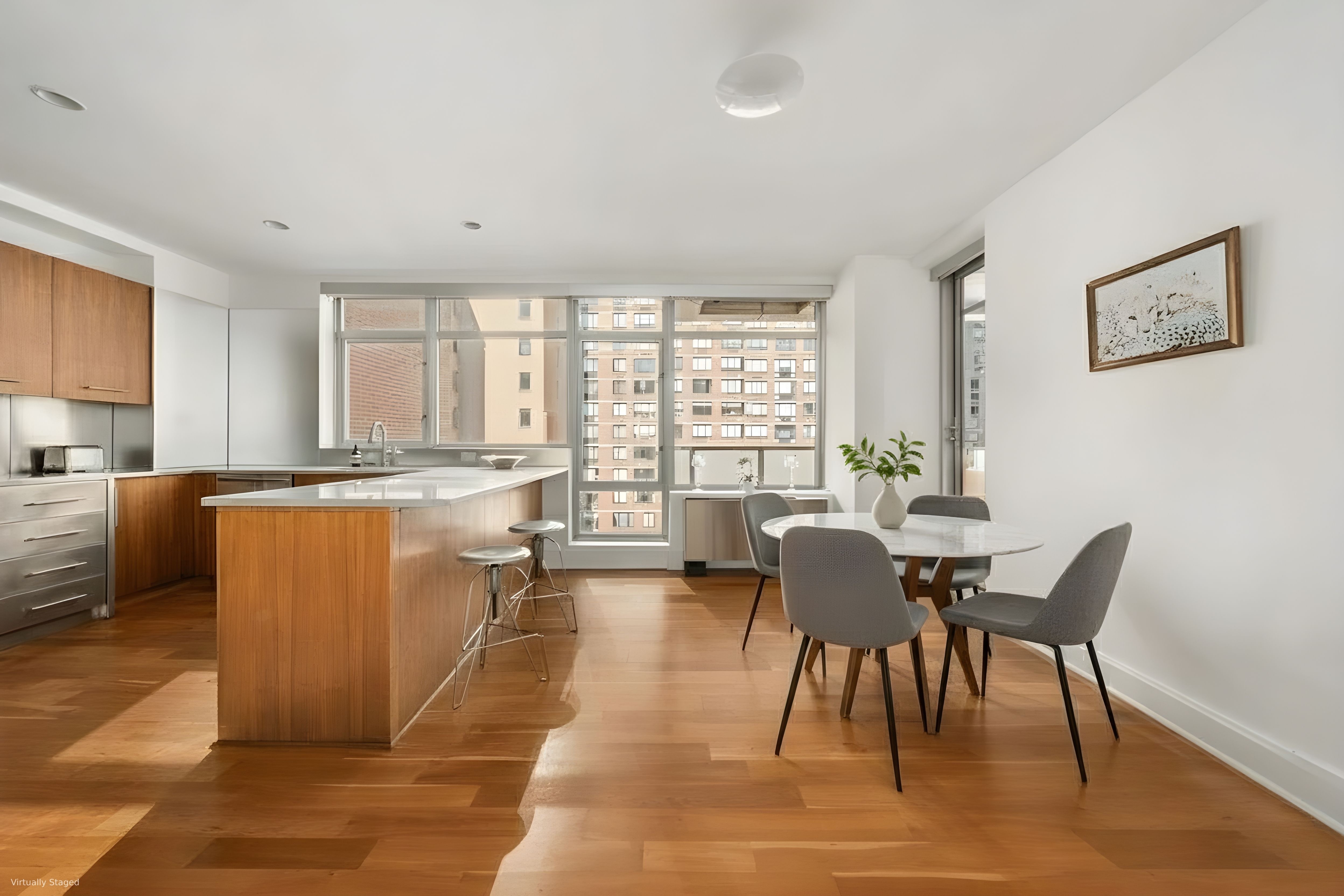426 West 58th Street is a full-service, white glove condominium building with amenities that include a 24-hour doorman, a state-of-the-art fitness center, a private storage unit that conveys with the apartment, and a bicycle room. Steps from Central Park and Columbus Circle, in the middle of Manhattan’s bustling center, as well as the city’s finest dining and shopping, this incredible penthouse embodies sophistication and luxury. Some photos are virtually staged.