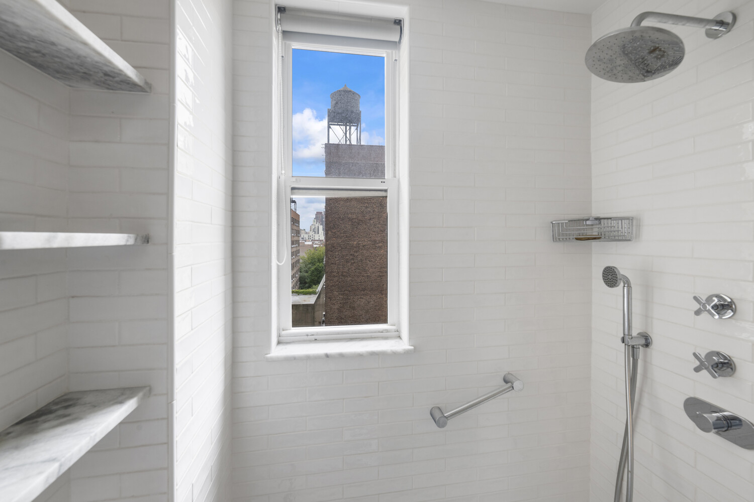 The primary bedroom has corner southern and western exposures allowing for wonderful natural light. There's a huge walk-in closet and the windowed primary bathroom has been recently renovated with Carrara marble, subway tile and Fantini fixtures.