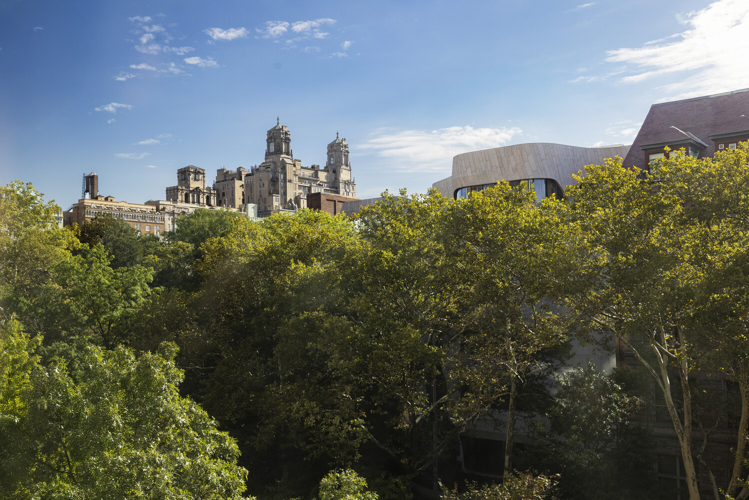 Bathed in natural light with open eastern and western exposures, the residence was thoughtfully designed for grand living and effortless entertaining. The expansive great room provides a gracious flow for both formal gatherings and relaxed daily living. A gas fireplace anchors the space, adding warmth and elegance. Eastern views overlook Roosevelt Park, the Planetarium, and the Museum of Natural History, creating a truly picturesque backdrop.