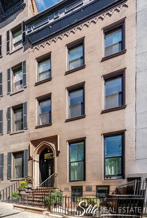 Built circa 1849 and bordering Tompkins Square Park to the East, The Charlie Parker Residence is a rare example of a Gothic Revival style townhouse. The facade presents gorgeous original details with double wood doors, a decorative relief beneath the projecting box cornice and a well-preserved pointed archway with clustered colonettes.
