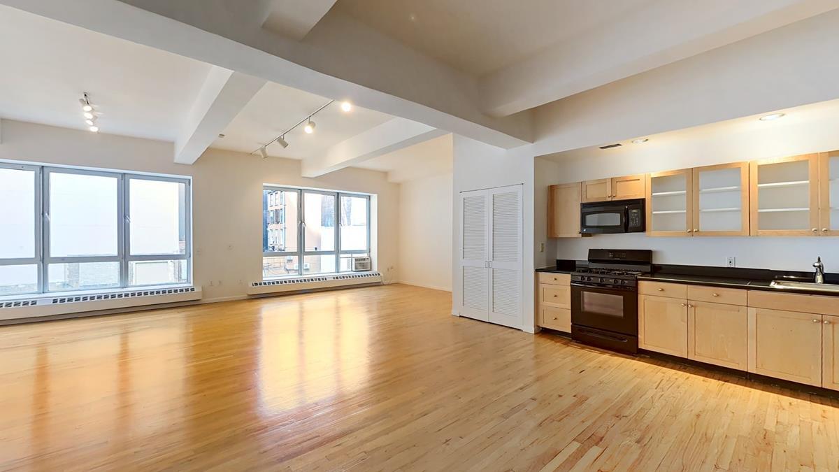 Spacious live/work apartment in FiDi is a must see. This beautiful apartment has hardwood floors, large windows, 12 ft high ceilings, track lighting, in-unit washer & dryer. Lots of closet space and a storage room in unit.
