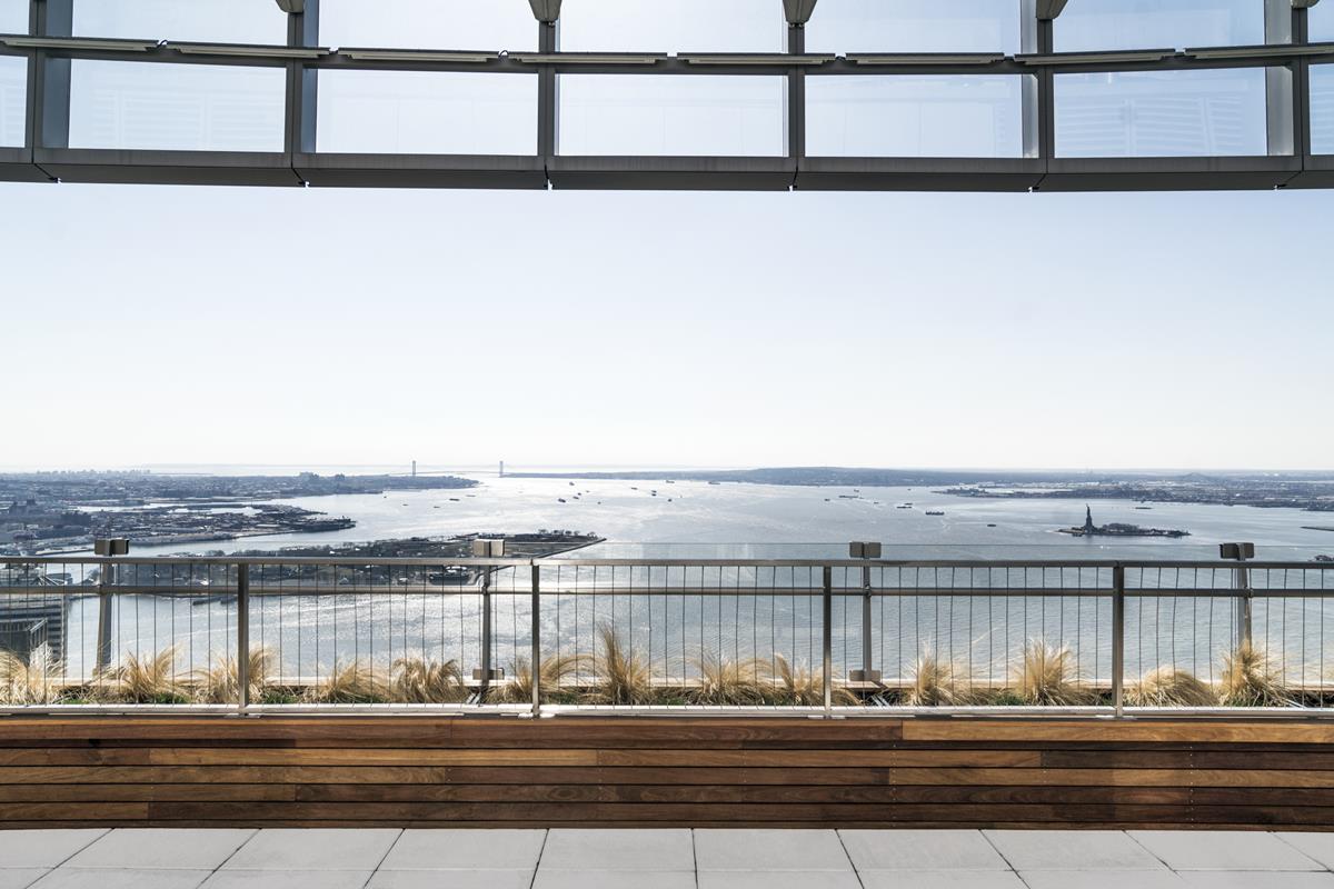 Penthouse 58A, is one of a few PHs atop a striking curved glass tower 50WEST. At 3,653 square feet, this exceptional 3-bedroom, 4-bathroom penthouse covers half floor, offering expansive South-facing views of New York Harbor and Statue of Liberty, East view, and north-facing views of the Manhattan skyline, Hudson River, and beyond. From an elevator vestibule only shared between 2 PHs on this floor, you will enter this majestic home, through a formal entry gallery. Continuing through, the gallery brings you to a breathtaking oversized living room, with nearly 100 linear feet of floor-to-ceiling glass wrapping the gentle curve of the sprawling space, offering panoramic vistas.