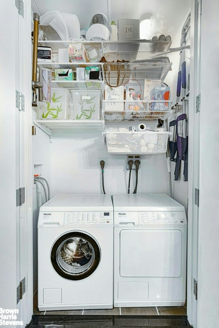This gracious three-bedroom residence overlooks a charming tree-lined street, with a loft-like Living/Dining Room with tall windows that open like French doors onto decorative wrought-iron balustrades. The open chef's kitchen is equipped with Florense eco-friendly cabinetry includes Caeserstone counters and sleek muted oak cabinetry, Miele and Viking appliances, a 54-bottle wine refrigerator, In Sink Erator garbage disposal, and Insta-hot water dispenser.