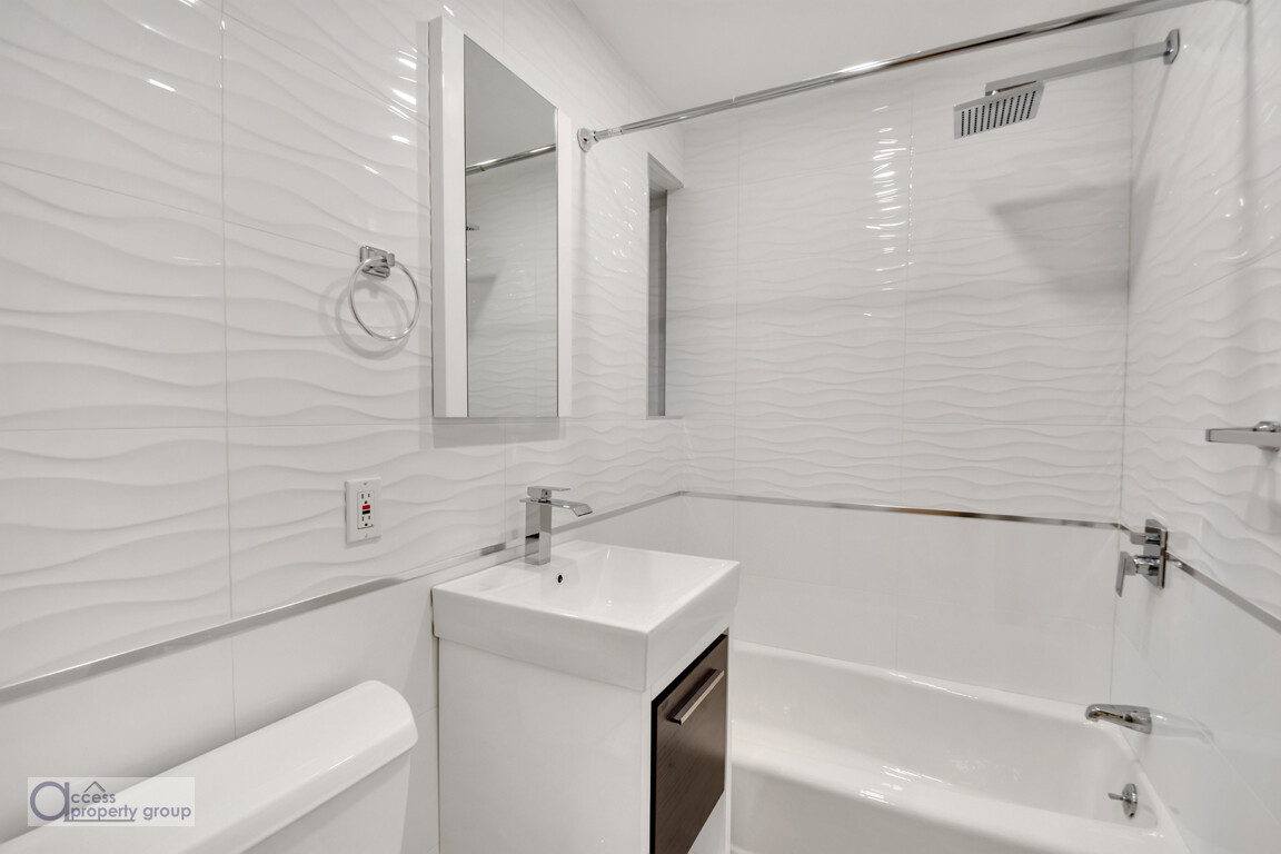 Right after the entrance hallway with two extra large custom-fitted closets you find a decadent dressing area with made-to-measure dresser. Off the dressing area is a beautifully renovated, trendy bathroom with a contemporary white wave tile, all-white fixtures with a touch of rich espresso, and sleek chrome hardware. The thoughtfully designed kitchen boasts white shaker-style cabinetry contrasted by a modern glass/porcelain tile backsplash, all new stainless appliances, and quartz counters. The living room with recessed lighting is incredibly spacious and has a charming little nook perfect for a bed, or an office, or whatever best fits your needs. The renovations don't end with the kitchen and bath: in addition, you will find newly refinished floors with dark rich stain and smooth freshly painted walls and ceilings creating a luxurious feel throughout the apartment. Western and northern exposures offer warm afternoon light and there are trees right outside the window facing a quiet block.