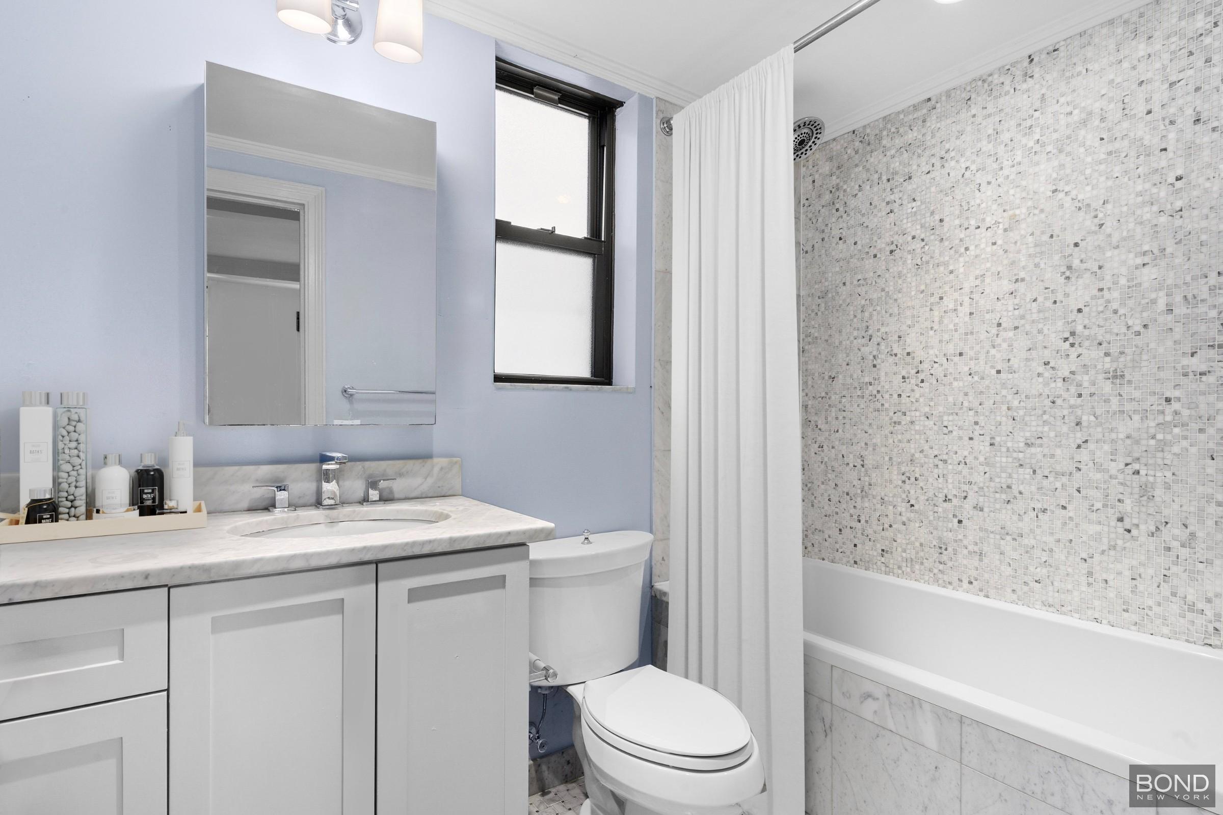 The large open living/dining room boasts two extra-wide windows offering eastern exposure and sunrises over a sparkling East River. Continue on to your generously sized bedroom with third walk in closet! Easily place a king-size bed, dressing area and additional work space. The en-suite windowed master bathroom has a large Zuma soaking tub, marble tile and marble sink vanity.