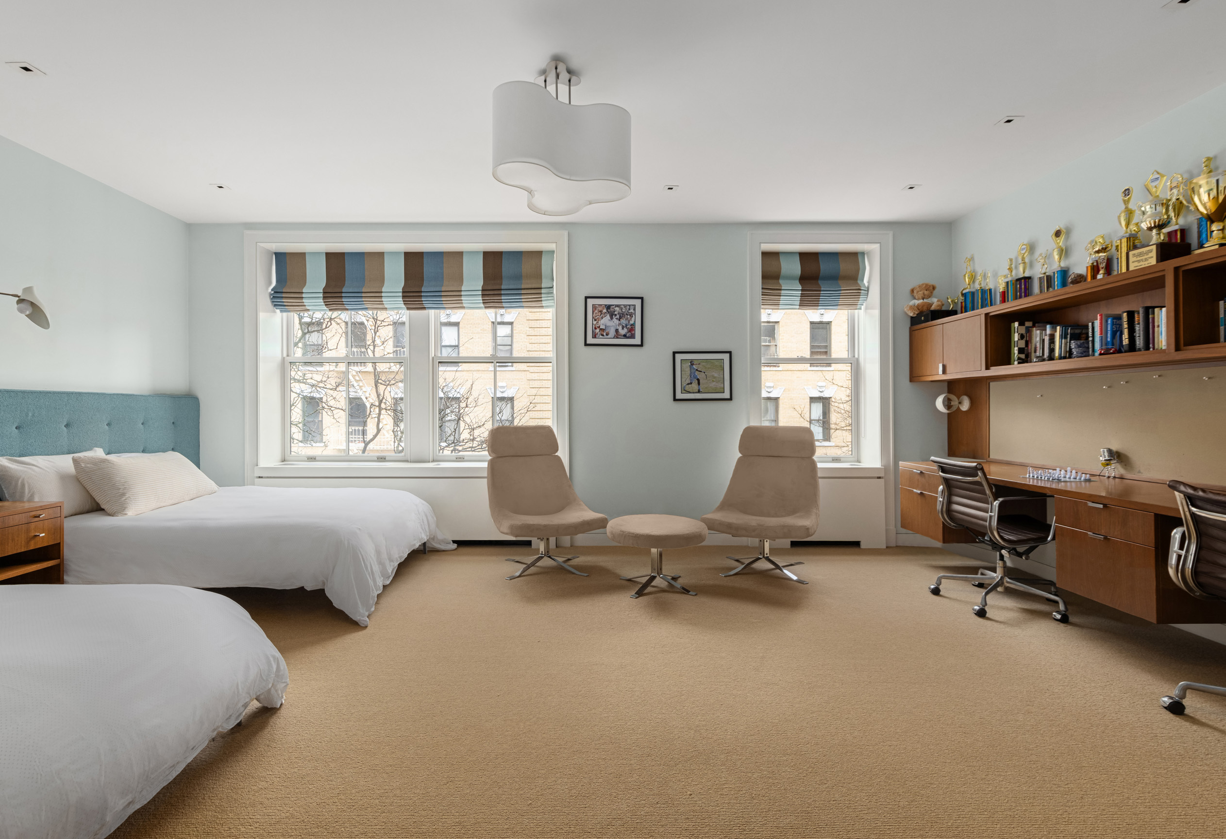 Occupying the entire fifth floor, the palatial primary suite is an exercise in contemporary elegance and sophistication. The massive, windowed ensuite bathroom boasts stunning wood and stone finishes, a Waterworks soaking tub and separate double stall steam shower, as well as a private water closet and radiant heat floors. Completing the primary suite are a large dressing room, two walk-in closets and a home office with custom-built triple-desk seating. Rounding out this incredible home is a finished basement that houses a media room/den, endless storage space, a full bathroom, and large laundry room with industrial-sized washer/dryer. An elevator also services all floors.