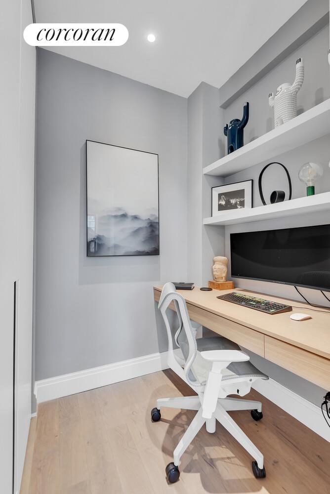All three bedrooms are sun-filled throughout the day with open city views. The primary suite is stunning with three windows, a custom designed home office, two custom-fitted double-door closets, brand-new City Quiet windows, and a beautiful primary bathroom with a double vanity and spa-like marble shower. The two additional bathrooms are located adjacent to both bedrooms with herringbone marble floors; one with a seamless glass shower and one with a deep-soaking tub. The third bathroom has a brand-new vanity.