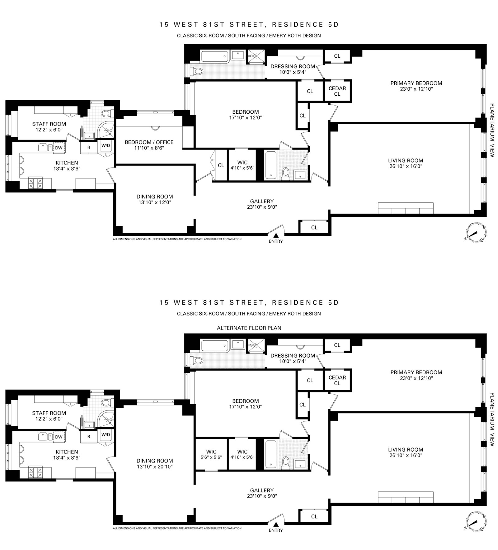 This extraordinary south-facing Classic Six residence at the legendary 15 West 81st Street blends timeless sophistication with grand scale, exceptional light, and world-class views. Designed by Emery Roth, one of New York's most revered architects, this home enjoys a prized position overlooking the Rose Planetarium and the American Museum of Natural History - offering a front-row seat to some of Manhattan's most iconic scenery. A gracious 23-foot entrance gallery sets the tone for the home's elegance and scale. From here, enter the expansive 27' x 16' living room, where three oversized south-facing windows flood the space with natural light and frame enchanting views. Original quarter-sawn oak floors and refined moldings speak to the home's rich architectural heritage.