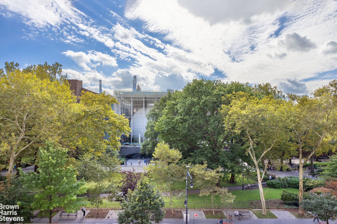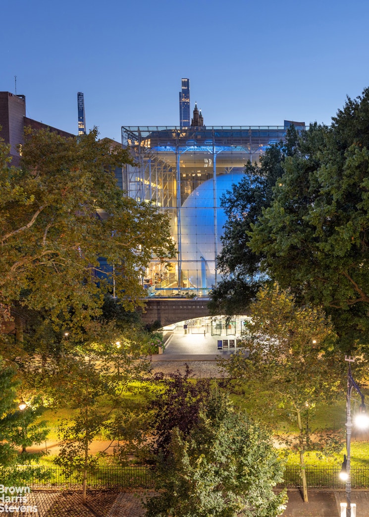 The primary suite is a true retreat, offering dramatic views of the Planetarium. It includes a large dressing room with three spacious closets, all of which can be combined to create a luxurious dressing area. The windowed primary bathroom features a deep soaking tub, a separate walk-in shower with seven shower heads, and a sense of spa-like serenity.