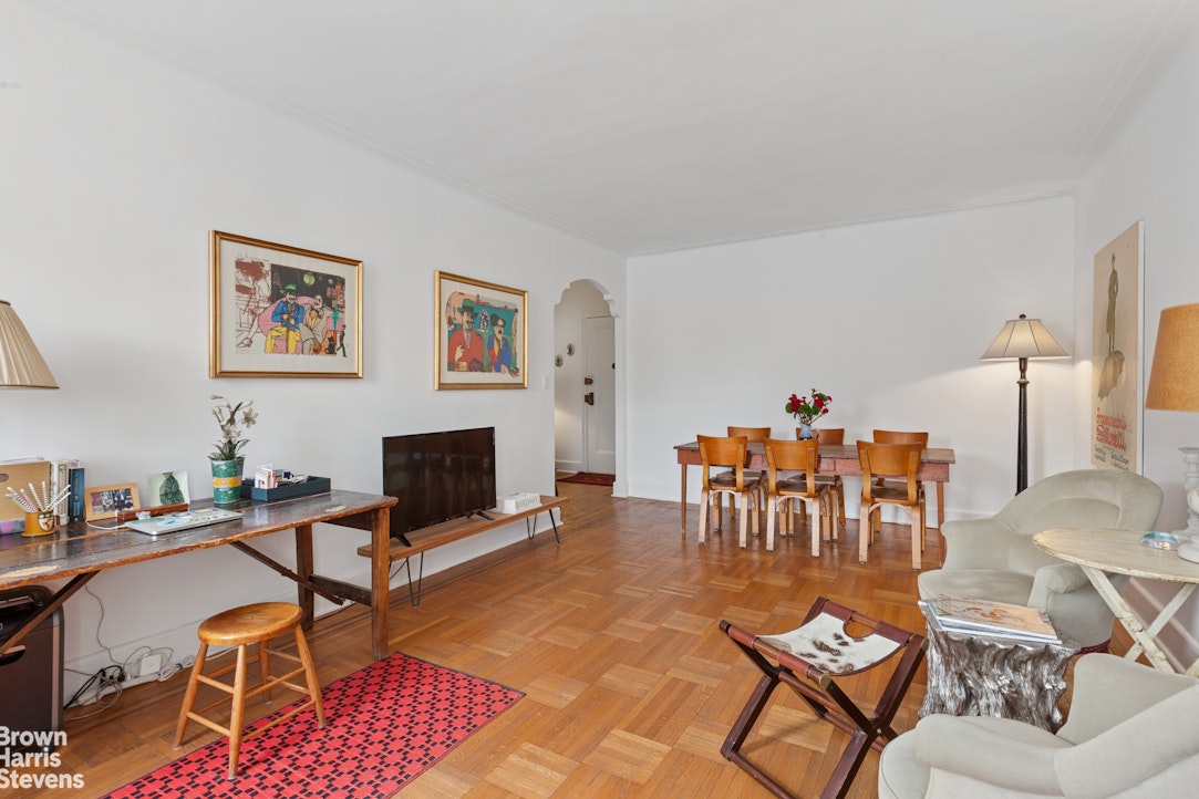 Step into your foyer a large bright entry into this oversized, sun filled apartment that perfectly blends classic pre-war space and charm with modern comfort. The expansive living and dining area features high ceilings , hardwood floors and generous proportions ideal for entertaining , hosting and everyday living. Windowed eat-in kitchen with generous counter space and ample storage, waiting for your personal touch. The windowed bathroom retains its original pre-war character, while the oversized bedroom offers dual exposures , excellent natural light , large spacious closet and the sense of a true sanctuary.