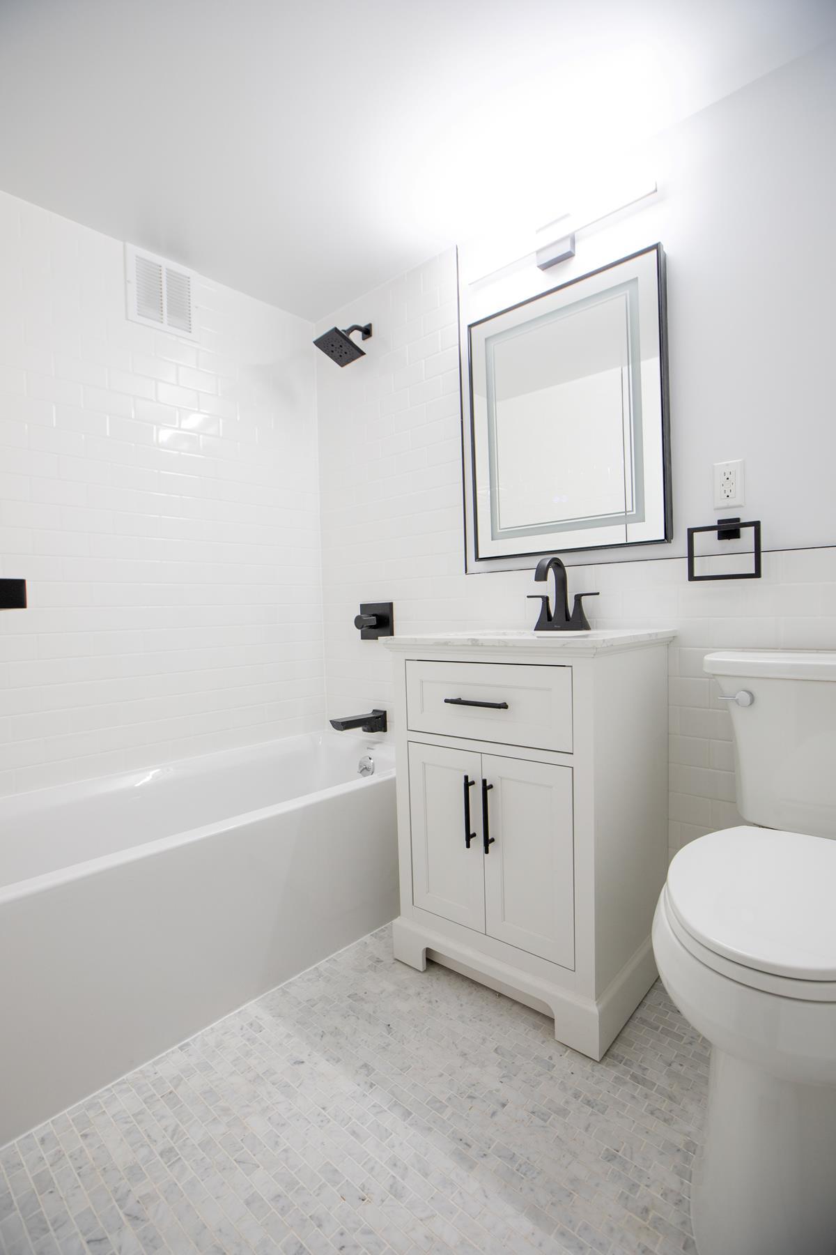 The bathroom as well has been nicely renovated with marble tile floor and all new white clean finishes. The entire apartment has large windows which enhance the bright airy feel of the space. There are beautiful new hard wood floors throughout.