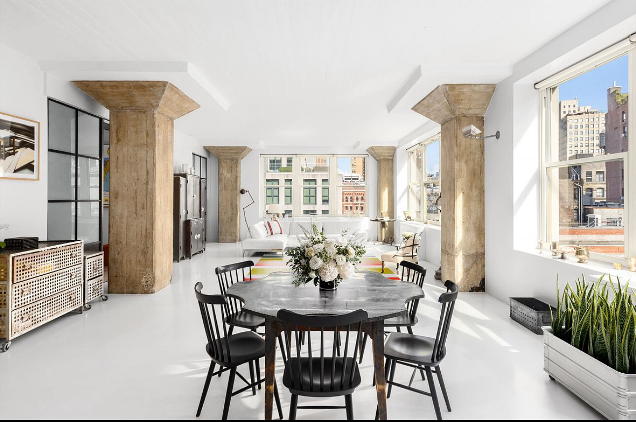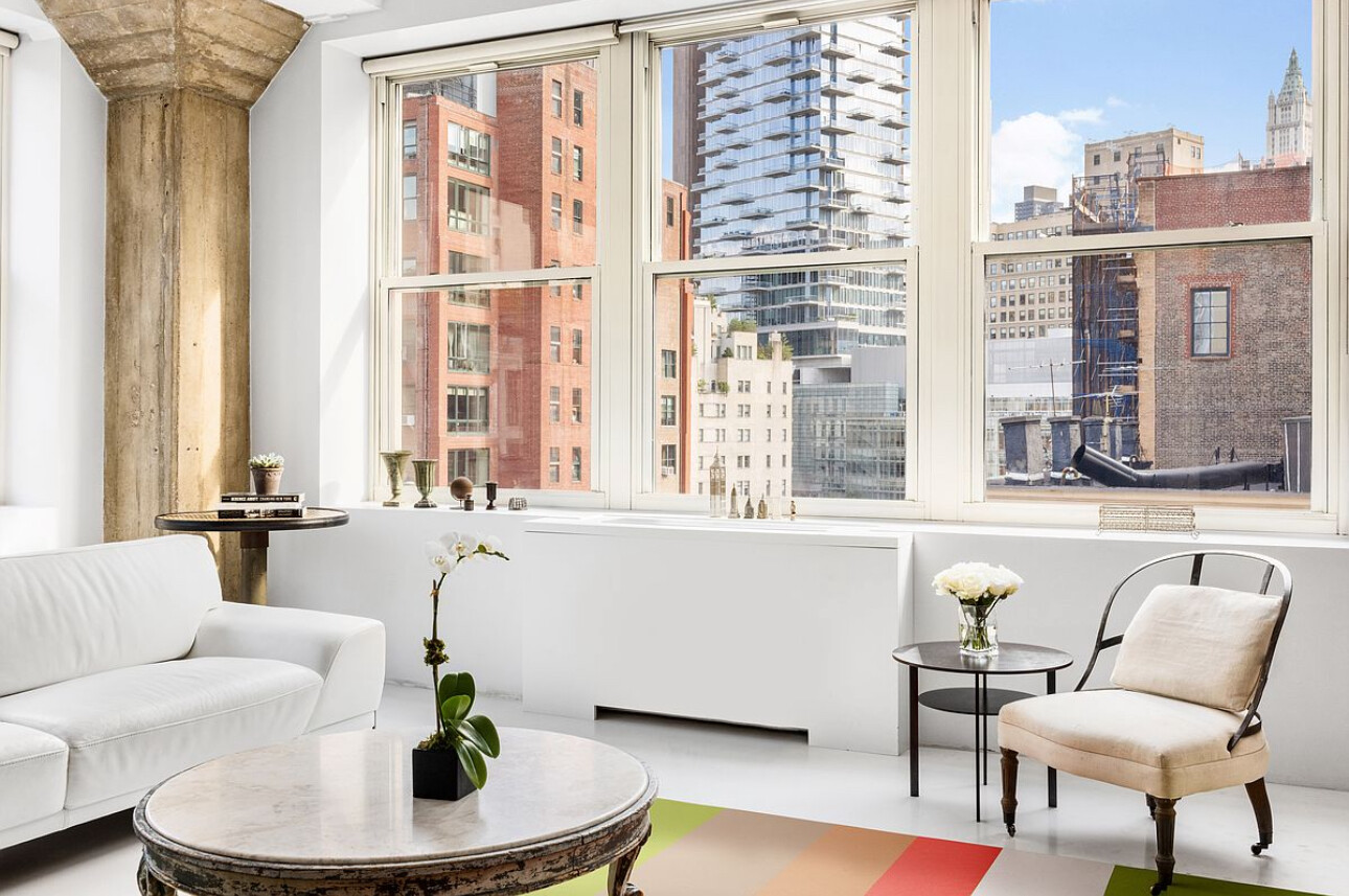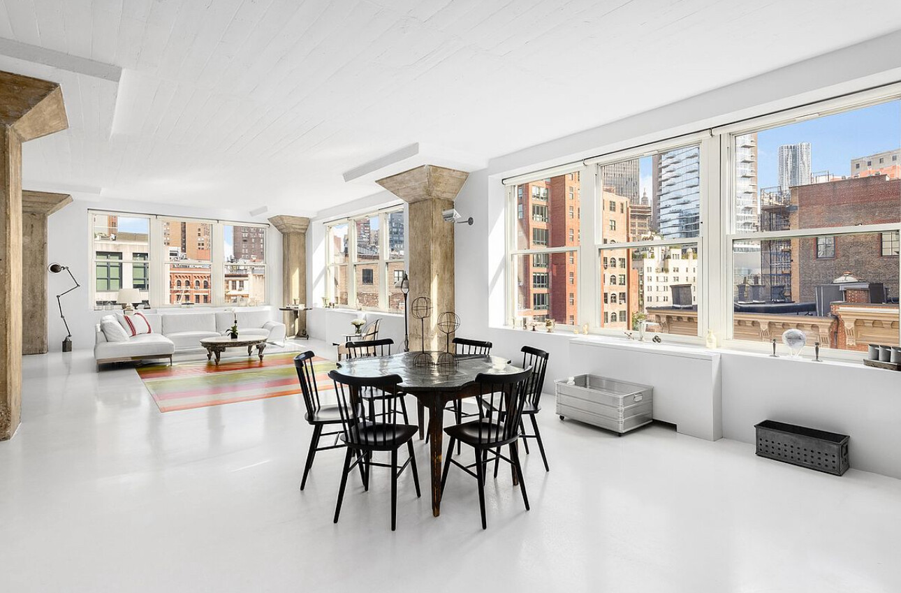 Residence 6B is a highly coveted, expansive two-bedroom corner loft featuring an additional den/sleeping area, two bathrooms and 15 huge windows lining over 2,000 square feet at the renowned Atalanta Condominium in the heart of Tribeca. Enter through the gallery foyer and be greeted with a sun flooded great room with unobstructed southern and eastern exposures overlooking the famed architecture of Lower Manhattan. Spanning over 40 feet, this space allows for seamless entertaining. Quintessential loft details abound such as original exposed concrete columns and high ceilings throughout.
