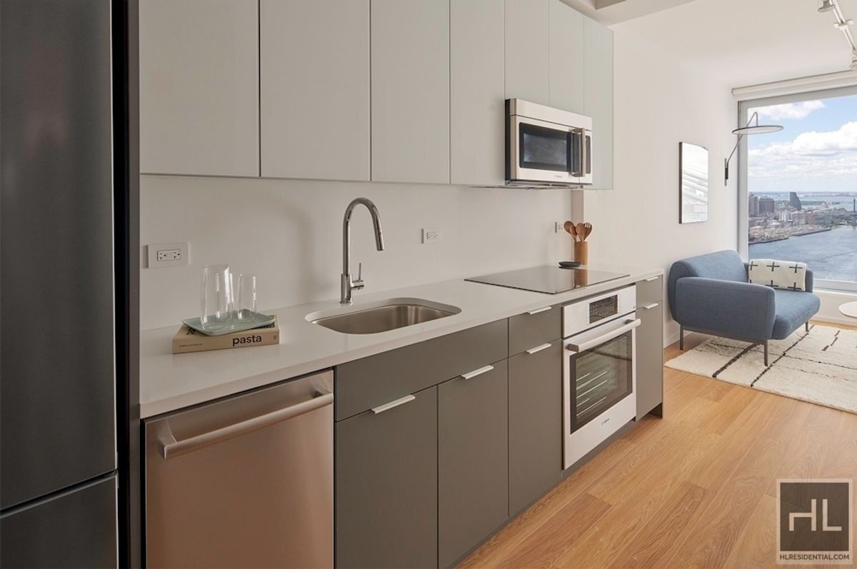 Welcome to your oasis of natural light and breathtaking scenery in this junior one-bedroom residence, where the open-plan living space is accented by sweeping south-facing views of the water, city skyline, and iconic bridges. Designed for seamless urban living, the home features a dedicated sleeping area generously sized for a queen bed, complemented by modern conveniences including an in-unit washer and dryer. Residents enjoy attentive doorman and elevator service along with exclusive access to a collection of premium amenities-from a full-service fitness center with dedicated group studios to indoor and outdoor pools featuring hydrotherapy and spa options. Unwind on expansive roof terraces, collaborate in WiFi-enabled lounges, and entertain in beautifully appointed social areas complete with chef's kitchens and private dining. With amenities like a children's playroom, pet spa, bike storage, and curated garden spaces, every lifestyle is supported and celebrated. Enjoy pet-friendly living and easy touring options, whether in-person or virtually, as part of a vibrant community set in one of Brooklyn's most desired neighborhoods. Embrace an elevated living experience and connect with us today to make this remarkable home your own.